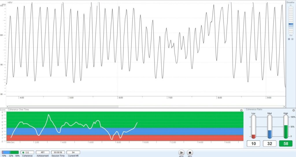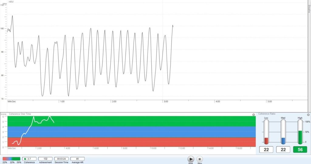 Pendant la phase du coaching, vous pourrez louer un appareil biofeedback pour mesurer votre niveau de cohérence. Les équipements de mesure HeartMath sont constitués d’un capteur auriculaire et d’une application. La mesure de la variabilité de la fréquence cardiaque et le calcul de votre cohérence sont affichés sur l’application au fil de l’eau.